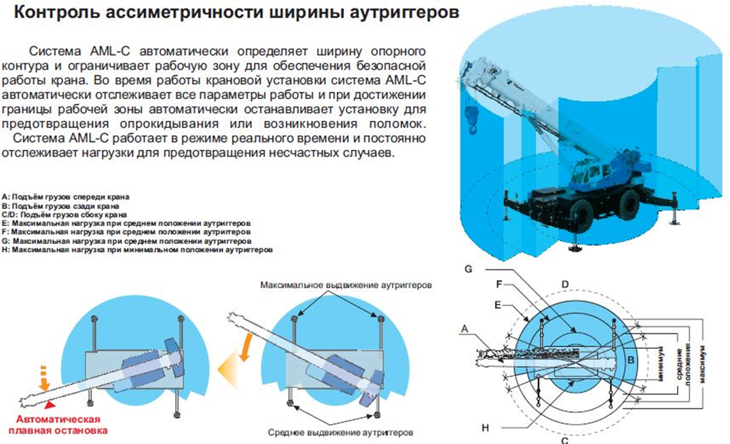 Основное конкурентное преимущество кранов TADANO заключается в несимметричной рабочей зоне относительно аутригеров. Краны серии GR могут работать с построением рабочей зоны относительно каждого аутригера (Рис. 1). Это позволяет работать в любых условиях. Эти и многие другие преимущества обеспечивают более высокий спрос на краны данной категории по сравнению с шоссейными и вседорожными.