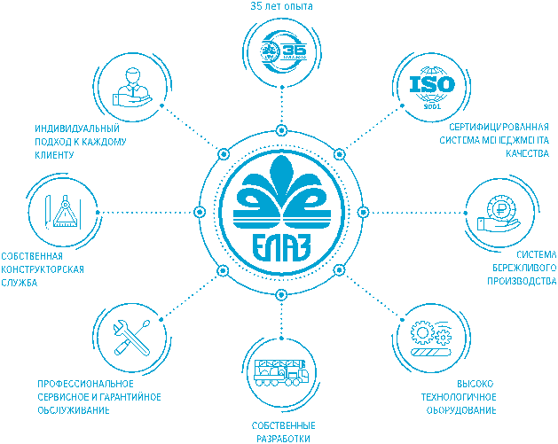 Проектная мощность линии конвейерной сборки составляет 500 единиц техники в год. В рамках программы импортозамещения, уровень локализации на текущий момент составляет 75% (за исключением трех компонентов: двигателя, мостов и коробки передач). Двигатель онкурентные преимущества экскаваторов-погрузчиков ELAZ BL обеспечиваются системой контроля качества, включающей несколько этапов: контроль на этапе разработки конструкторской и технологической документации; государственная сертификация модели; сертификация производства; контроль процесса производства (сертификат на соответствие требованиям ISO 9001-2015); 100% тестирование готовой продукции; монтаж, диагностика, мониторинг ресурса отдельных частей и изделий в целом; послепродажный сервис.