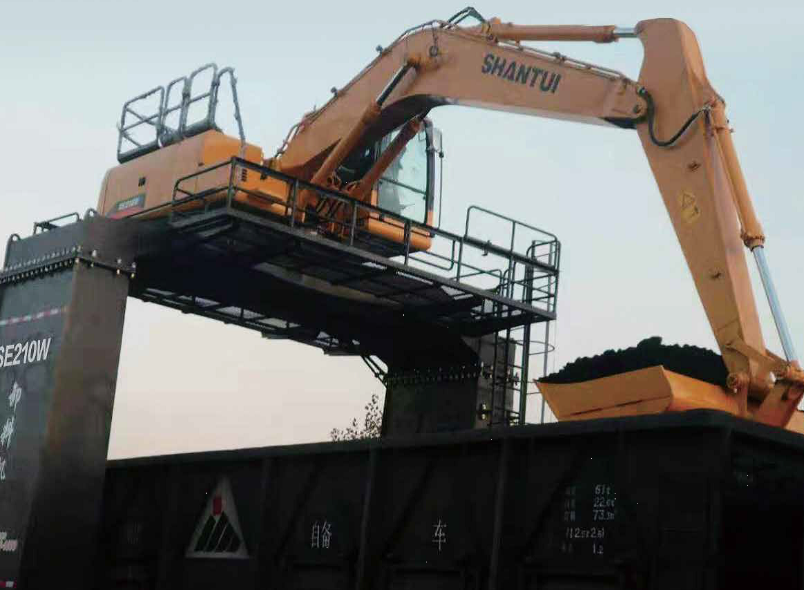 Спецмашина создана на базе экскаватора SE210 с объемом ковша 1,6м3. Имея ширину ходовой части более 5м и высоту 5,5м экскаватор, перемещаясь вдоль состава с легкостью осуществит оперативную погрузку / разгрузку вагонов углем, песком, щебнем и т.д.