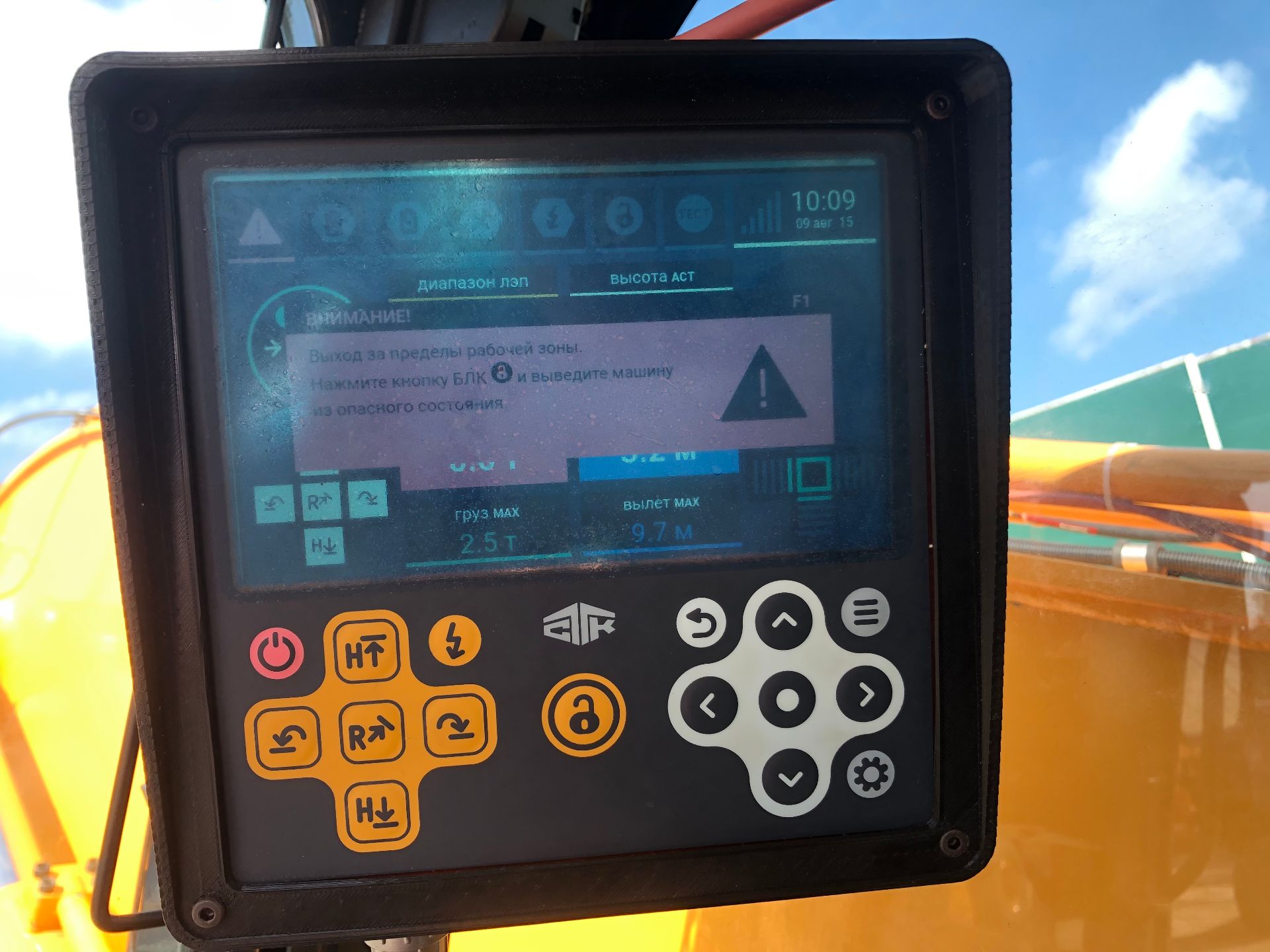 При пересечении границы зоны допустимой грузоподъемности блок обработки данных формирует предупреждающий звуковой сигнал или сигнал на отключение рабочего оборудования, что дает возможность оператору вывести машину из зоны блокировки и вернуть груз в рабочую зону.