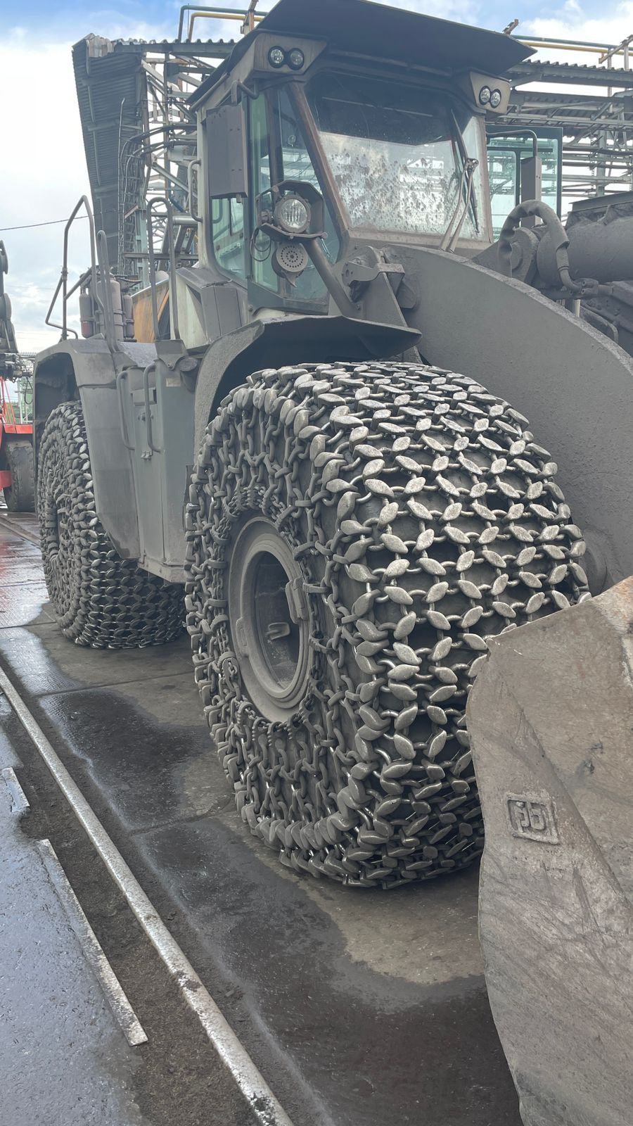 Ковш объемом 4,8 м3 изготовлен специально для работы с высокими температурами. Он имеет повышенную толщину дна и дополнительные ребра жесткости внутри самого ковша. Время подъема ковша занимает 6,1 сек. Разгрузка опрокидыванием происходит за 1,4 сек. Опускание оборудования на уровень земли – за 4,1 сек. Таким образом, рабочий цикл погрузчика составляет 11,6 сек.