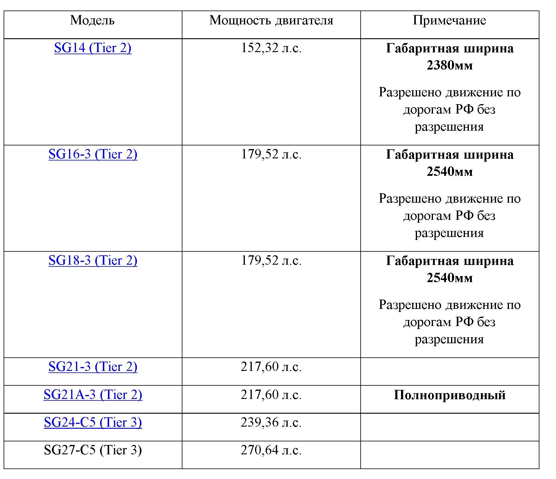 Линейка автогрейдеров включают в себя модели от 140л.с. до 270л.с.