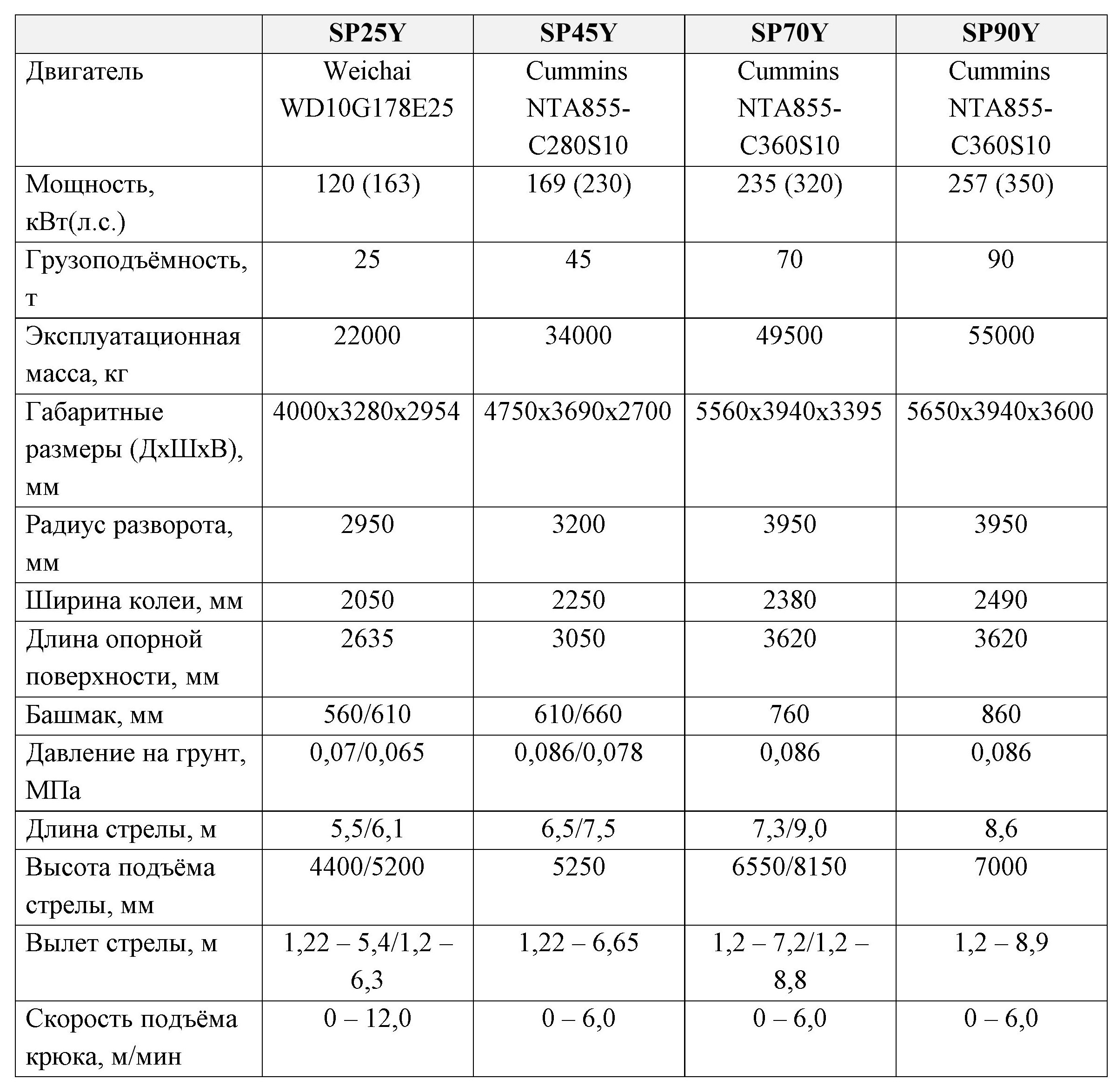 Модельный ряд трубоукладчиков SHANTUI включает в себя четыре модели: SP25Y, SP45Y, SP70Y и SP90Y.