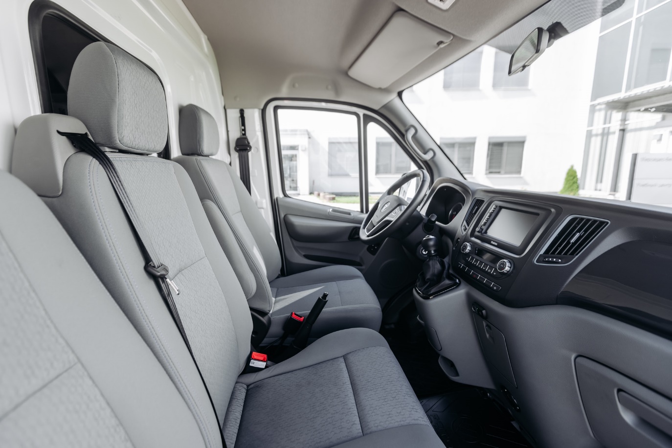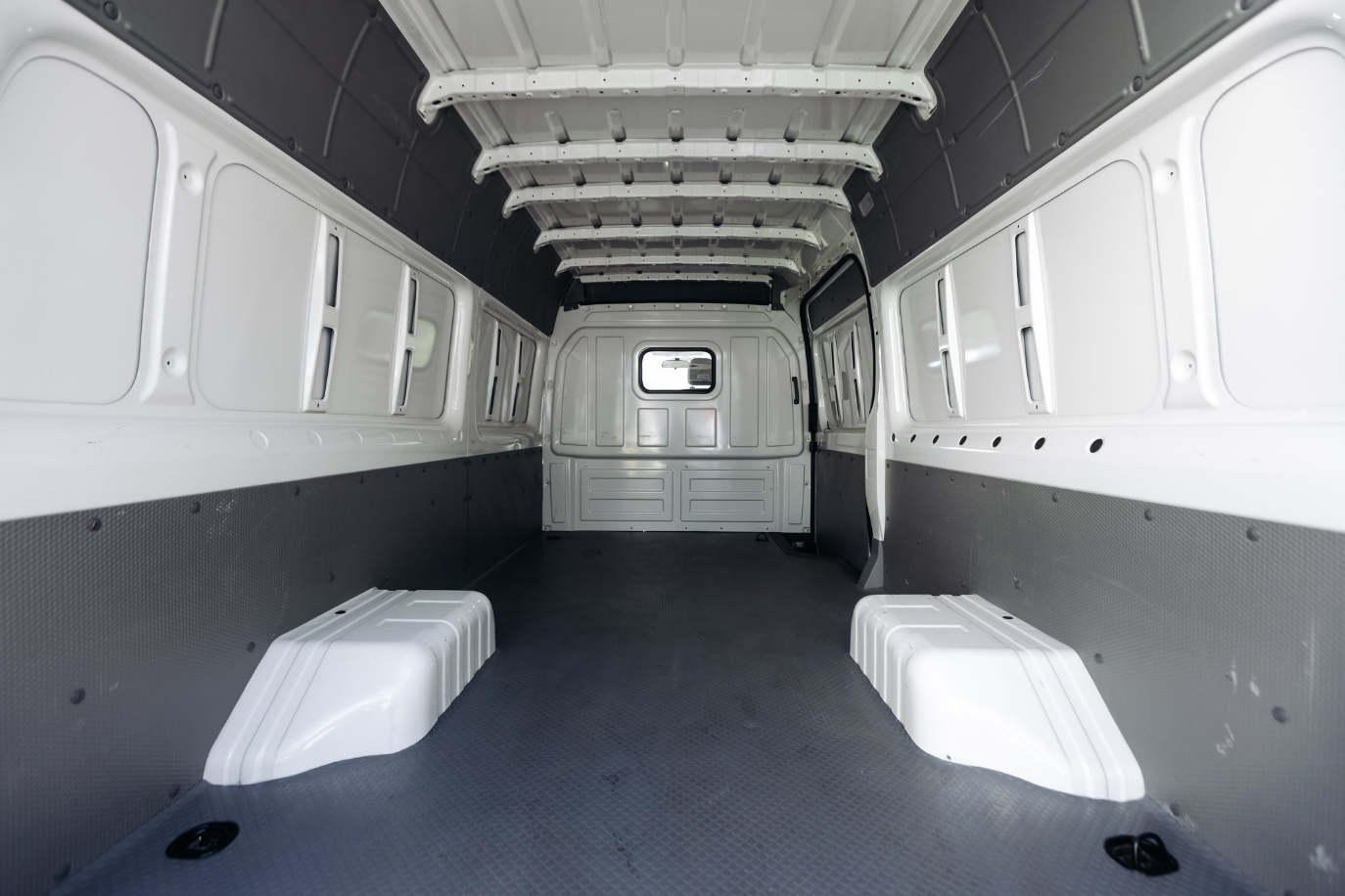 Грузовой отсек базовой версии отделен от кабины стальной перегородкой, сдвижная боковая дверь имеет подсветку ступени, задняя дверь может опционально открываться на 270о. Предусмотрена обшивка пола и бортов грузового, такелажные крепления.