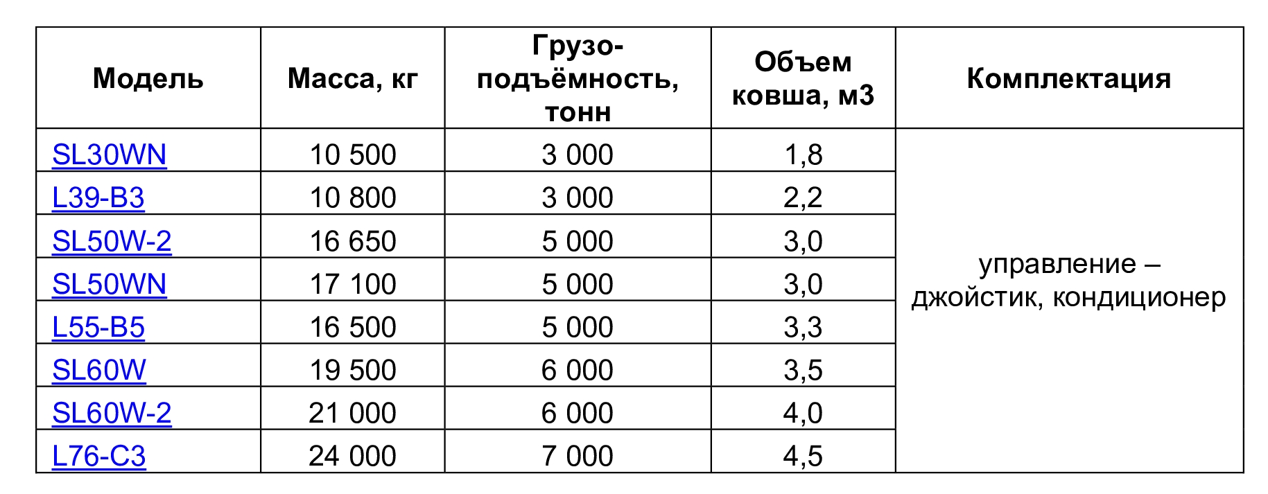 Модельный ряд погрузчиков Shantui представлен 3-, 5-, 6- и 7-тонными погрузчиками.