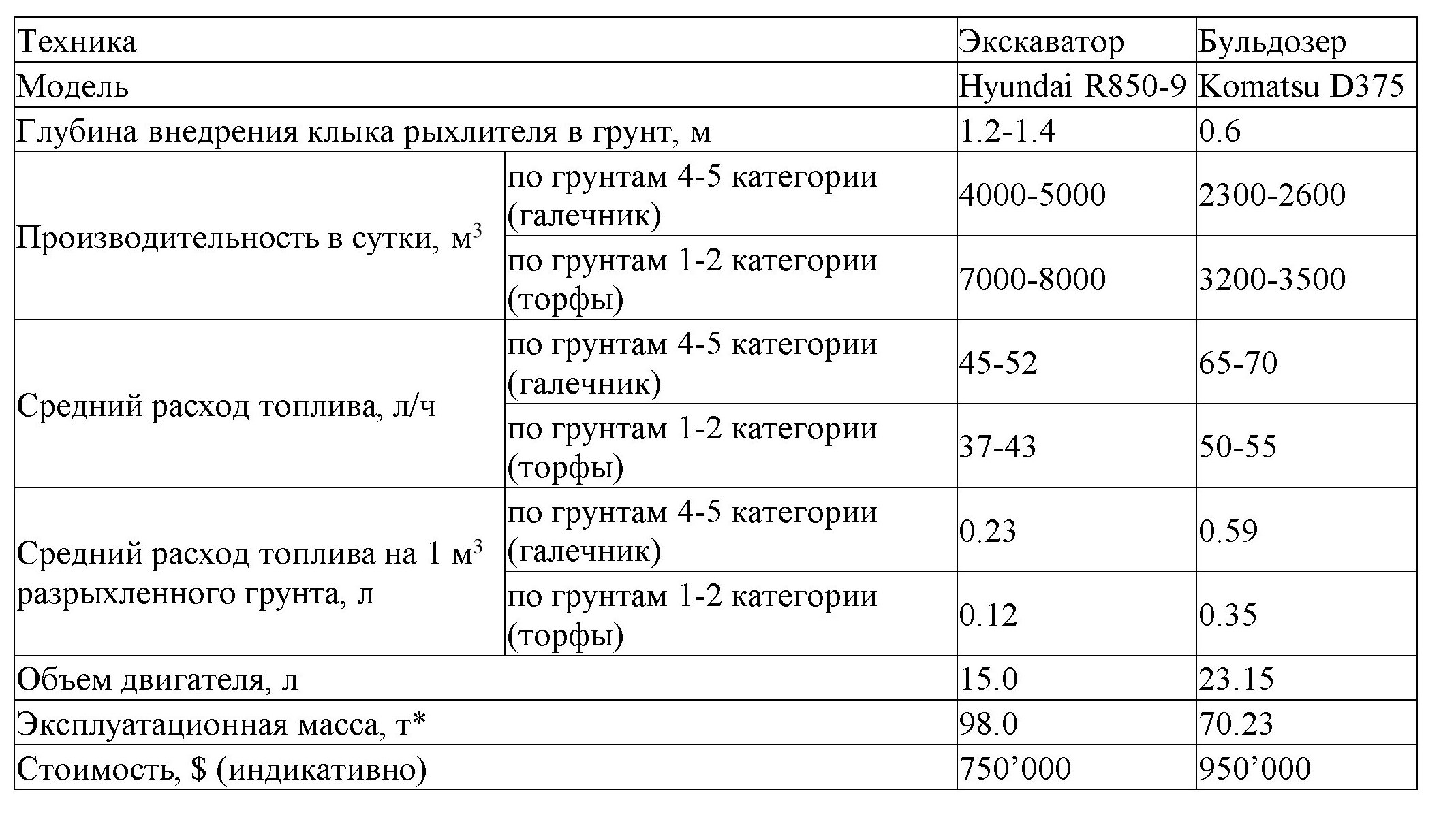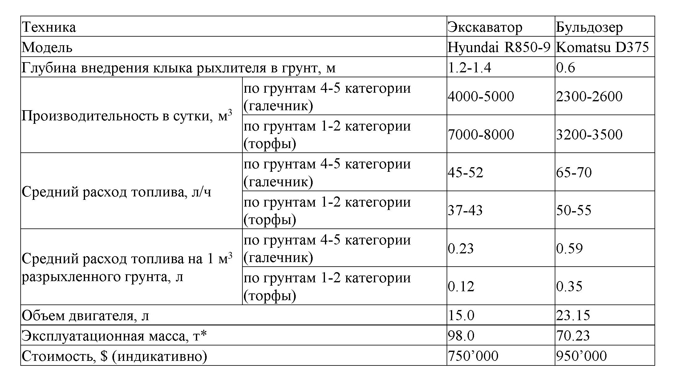 - * - Масса экскаваторов, включая оборудование для рыхления