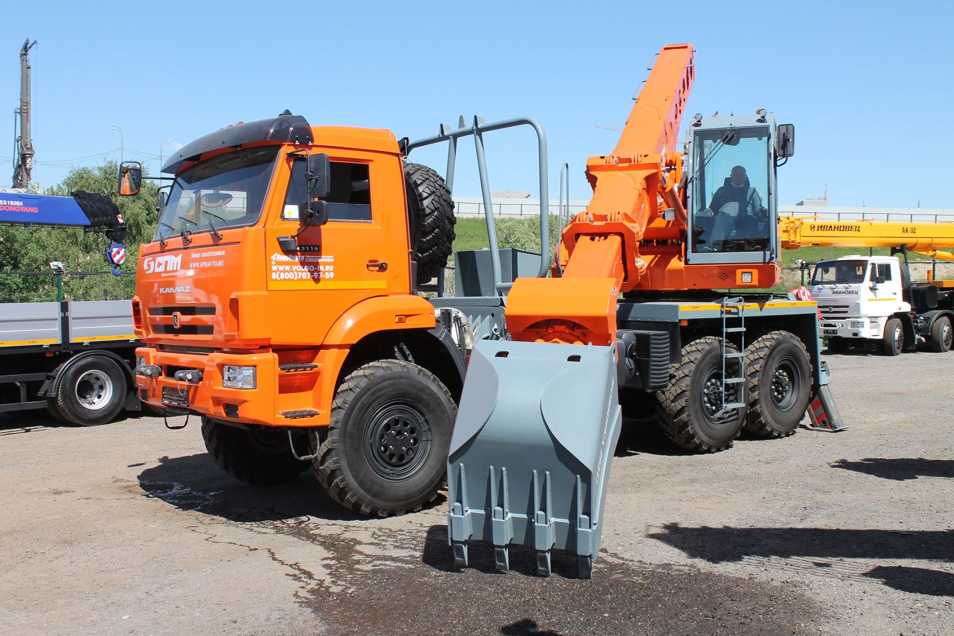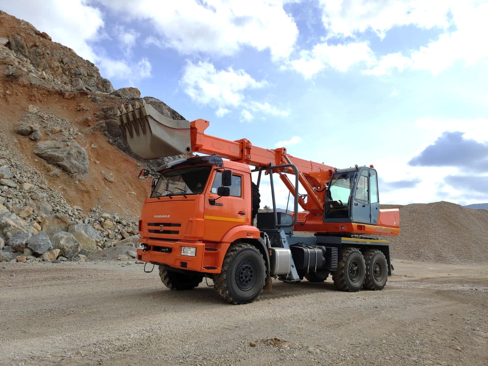 Модель автомобиля732701-1Базовое шасси43118-23027-50Колесная формула автомобиля6х6Комплектация шассиДвигатель КАМАЗ 740.705-300 (Евро-5), мощность двигателя 300 л.с., ТНВД АЗПИ, система нейтрализатор ОГ (AdBlue), КПП 154, МКБ, МОБ, аэродинамический козырекГабаритные размеры автомобиля9 200 х 2 500 х 4 000 ммСнаряженная масса20 000 кгПривод надстройки экскаватораОт двигателя шассиГоризонтальный радиус действия с задвинутым телескопом5.9 мГоризонтальный радиус действия с выдвинутым телескопом10.1 мГоризонтальный радиус действия с удлинителем 4,5 мДо 14.2 мГлубинный радиус действия с удлинителем 4,5 мДо 8.5 мГрузоподъемность на точке опрокидывания быстродействующего зажима при выдвинутом телескопе7 000 кгГрузоподъемность на точке опрокидывания быстродействующего зажима при выдвинутом телескопе2 600 кгГрузоподъемность с удлинителем 1,5 м1 600 кгГрузоподъемность с удлинителем 3.0 м1 200 кгГрузоподъемность с удлинителем 4,5 м700 кгВремя задвижения/выдвижения телескопа9.0 секСила копания85 кНПроизводительностьДо 115 куб.м/часСменный навесной инструмент24 вида