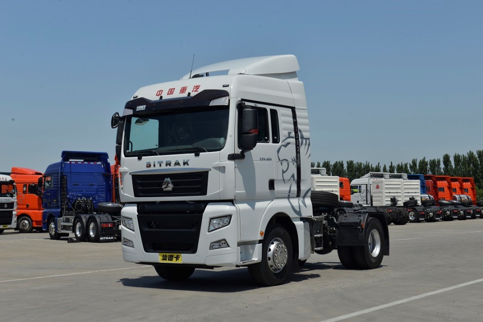 2.Тягачи SITRACK C7H с колесной формулой 6х4, как с пневматической задней подвеской, так и с рессорной. Данные тягачи предназначены для более тяжелых условий, чем тягач 4х2, и подойдут для работы в составе автопоезда с полуприцепами тралами и самосвальными полуприцепами.