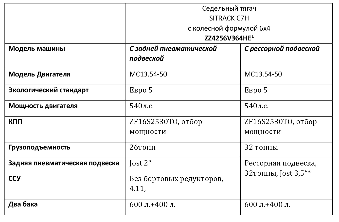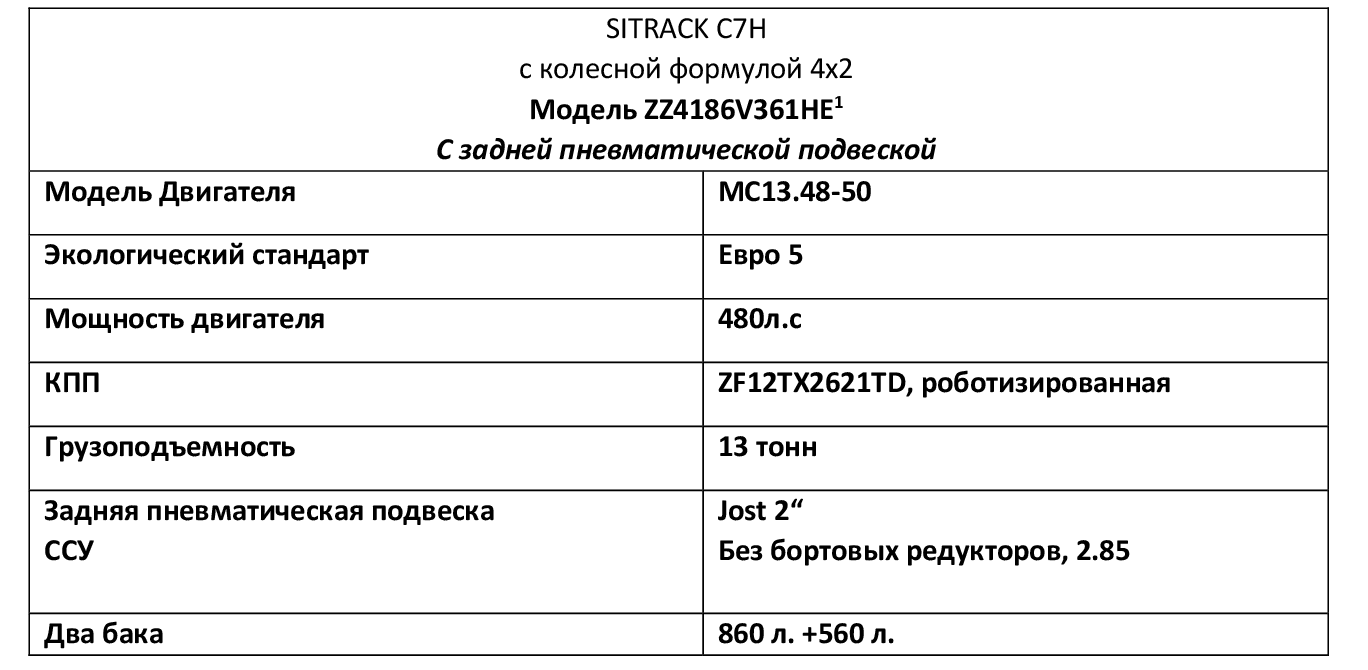 - Тягачи SITRACK C7H с колесной формулой 4х2, для осуществления региональных и международных перевозок.